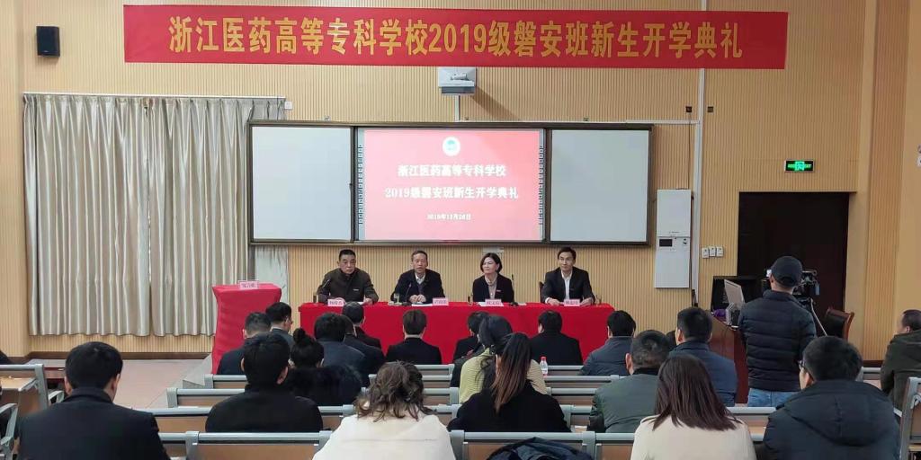 12月26日,我校2019级高职扩招(第二阶段)磐安班新生开学典礼在磐安县新城中学举行。校长任文霞、副校长杨俊杰、副校长韩忠培、磐安县副县长卢海浪、磐安县教育局、科技局、中药产业发展促进中心相关负责人出席典礼,学校办公室、教务处、招生与就业处、中药学院负责人与全体磐安班新生参加开学典礼。典礼由杨俊杰主持。