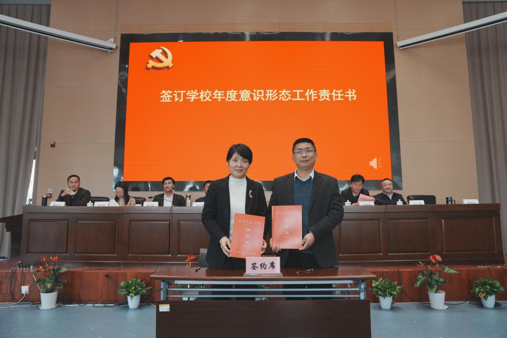 会上,娄小娥与基层党组织负责人签订意识形态工作责任书。校党委副书记韩忠培传达学习全省党的建设工作会议暨全省组织部长会议精神,全省宣传思想文化工作会议和全省统战部长会议精神。会议表彰了2024年学校优秀党建工作创新案例和五星级党组织,表彰了卡尔马克思杯理论知识竞赛优秀组织单位和先进个人,并举行学校首批“浙药潮声”8090和00后宣讲员、首批“浙药潮信”网络评论员受聘仪式。