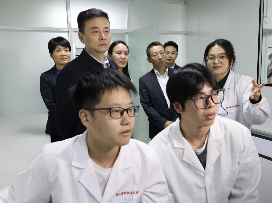 在浙江药科职业大学,汤飞帆走进人才会客厅、浙江省特色原料药及制剂质量提升协同创新中心,察看校园环境,了解学生就业、生源情况,以及食品药品检测平台、口服液制剂生产线、口腔材料实验实训中心等发展情况。他强调,高校与地方相伴相生、共生共荣,双向奔赴是共进路径。要加快教育强市建设,支持高校做优做强,不断完善公共服务配套,持续扩大优质教育资源供给,提升城市品质形象,增强区域吸引力和承载力,以高质量教育资源引导人口、人才、资源向宁波高效集聚;学校要继续围绕地方发展所需,结合宁波生物医药产业发展规划以及未来产业布局,进一步做好深化产教融合这篇文章。