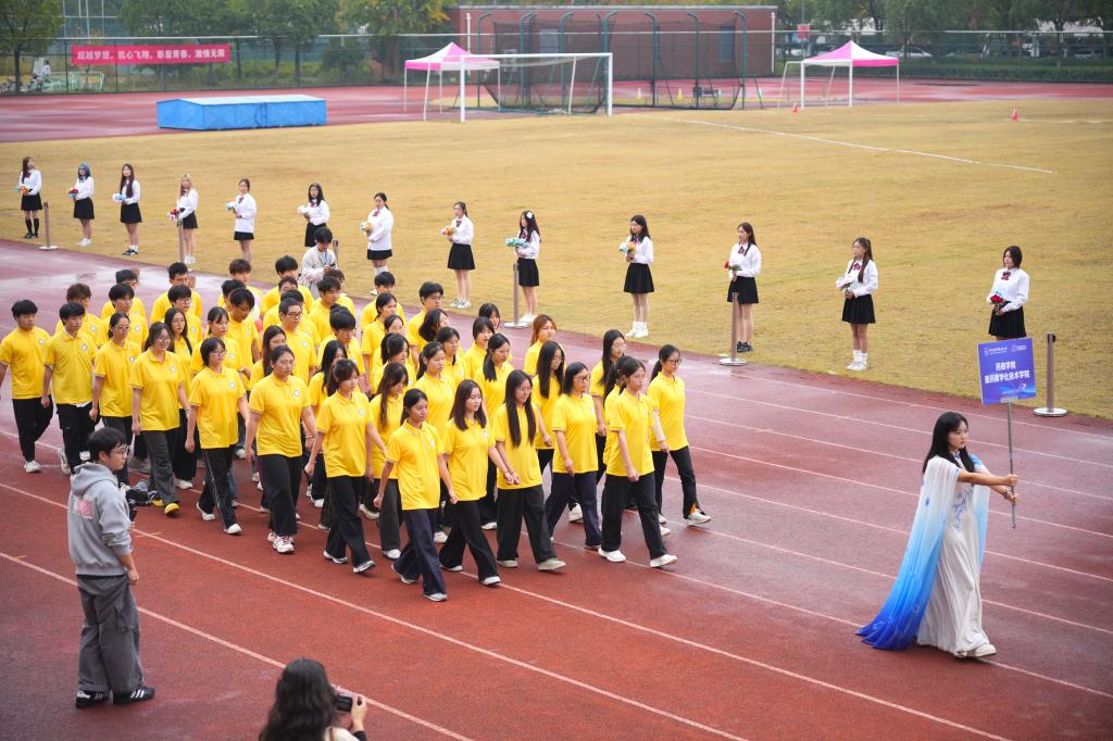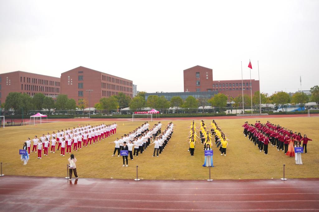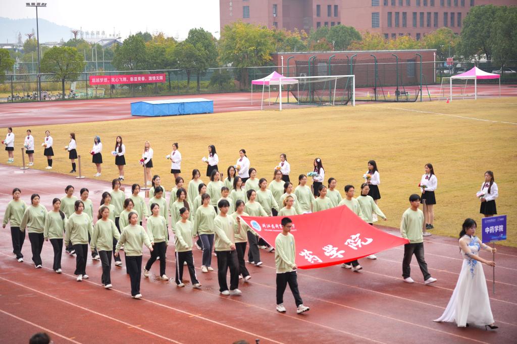 入场式上,国旗队、校旗队、会旗队、鲜花彩旗队、裁判方阵、8个学院运动员方阵以及教师方阵依次入场,他们步伐整齐、精神抖擞,充分展现了浙药大大师生的蓬勃朝气与昂扬斗志。8个学院运动员方阵各具特色,他们喊着响亮的口号,展示着各自学院的独特风采,彰显出为学院争光的决心;教师方阵也毫不逊色,老师们精神焕发,用“八段锦+热舞”展现出别样的活力与风采,他们的参与为运动会增添了一抹别样的色彩。