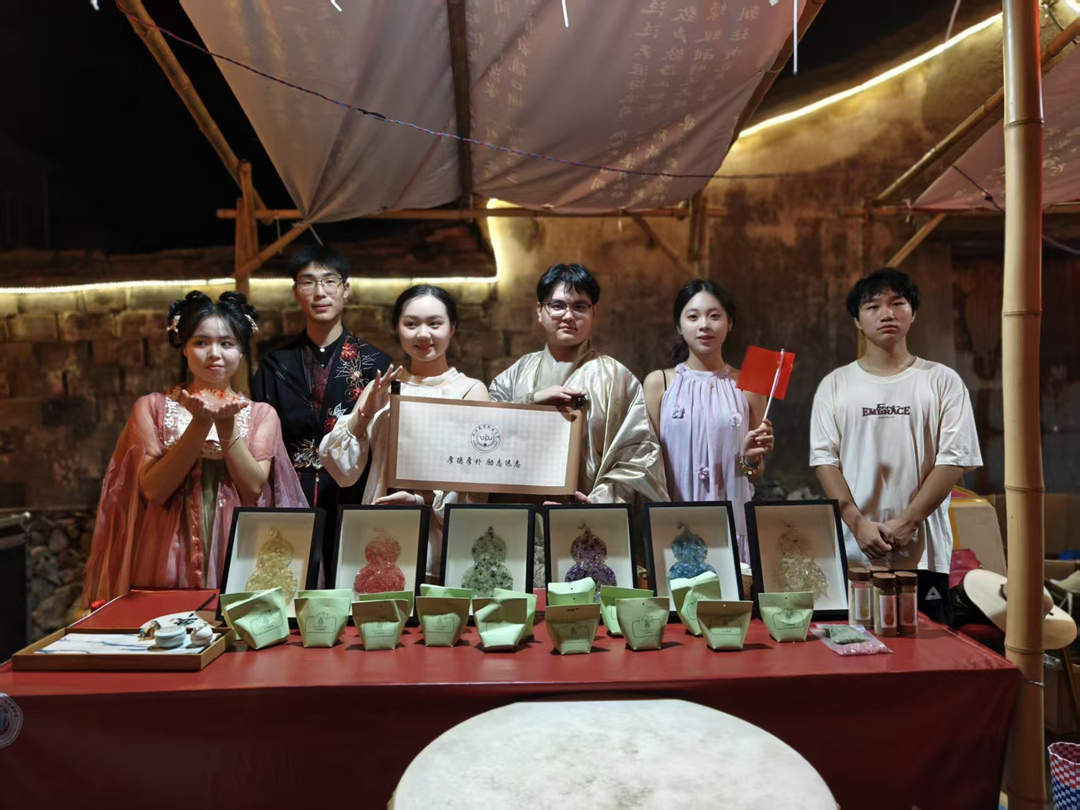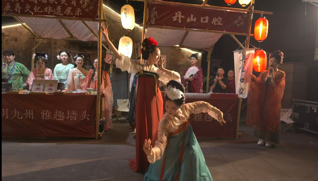 在墙头历史文化街区的中医药文化广场上,“星耀四明•海韵潮音”转角遇艺文艺展演中,文化特派员带校绿风艺术团携手宁波文艺志愿团队的师生们,以匠心独运的艺术构思巧妙融合汉、唐、宋、明等历代雅事与中华传统医药文化,精心创作《九州同游雅事录》等富有时代气息的新颖作品;同时推出“溪里有方•大美健康”系列文创产品《五彩福禄》,将传统美学与现代设计完美结合;带着游客根据典籍“祖方”配伍二十四节气香方。宁波市曲艺家协会陈一卿老师即兴创作《九州巷弄里的卖货郎》,以生动的艺术语言再现市井生活的烟火气息,让古老的非遗在皎洁月光下熠熠生辉。