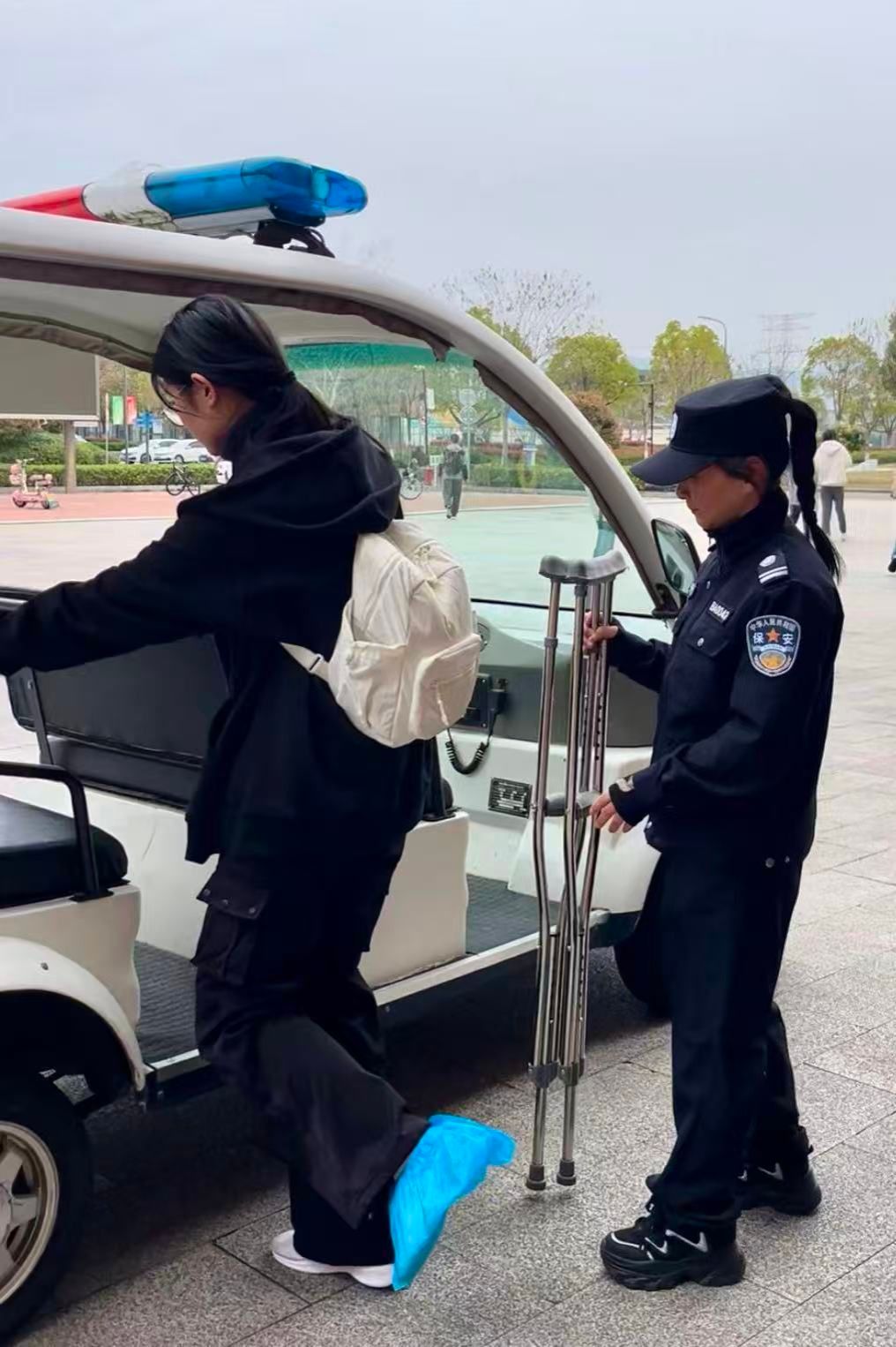 最近,有学生摔伤了脚,李亚辉就开着巡逻车去接送。从食堂到教学楼,从宿舍到校门口,一趟一趟,她不厌其烦。“有些学生很热情的,会跟我们保安打招呼。”每天看着这些年轻的面孔,她觉得心里踏实。“跳舞让我心态年轻,跟年轻人在一起,也让我心态年轻。”